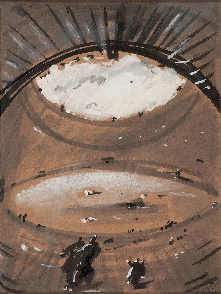 “Oval Composition, Interior“. Solomon Nikritin. (Ukranian. 1898-1965). 1920s. Ink, gouache, and watercolor on paper. 10 3/8 × 7 7/8″.